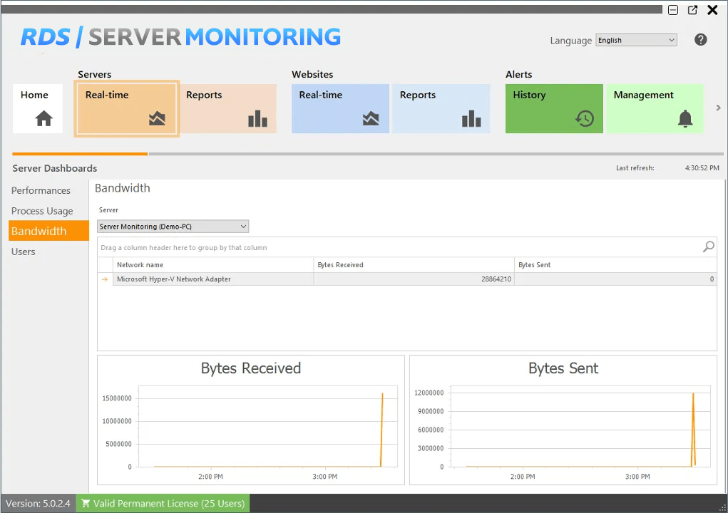 Real-time server and website monitoring software for RDS infrastructures. Get historical and real-time data about your servers, websites, applications and users.