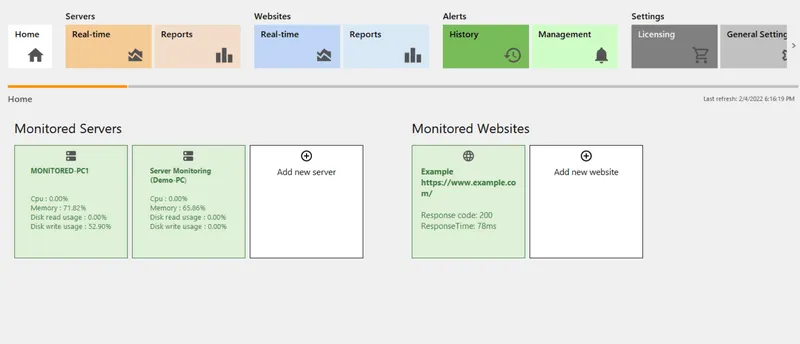 As you installed the Admin Console of Server Monitoring on one server, you can already monitor it as soon as you open the console.